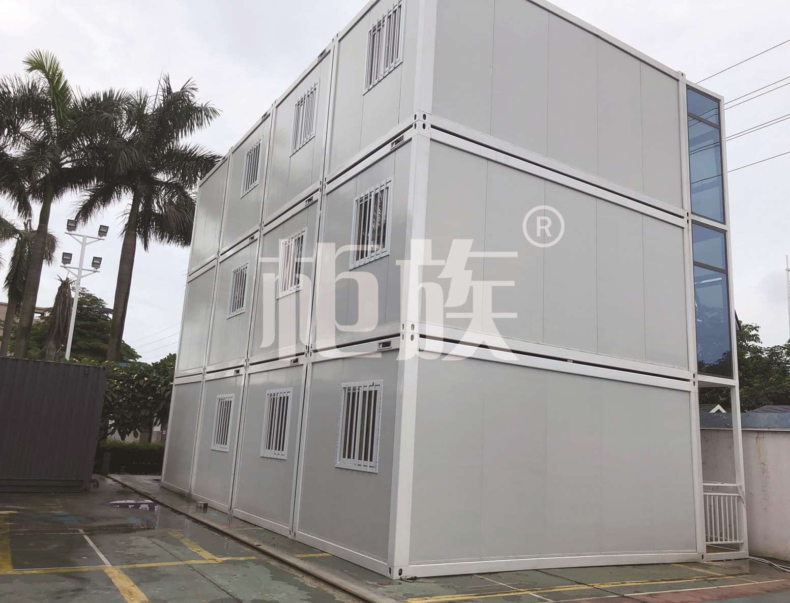 The packing container can be stacked up and down randomly and joined at will to create a larger and more personalized space. Adjustment type building base, also can adapt the requirement of different ground.